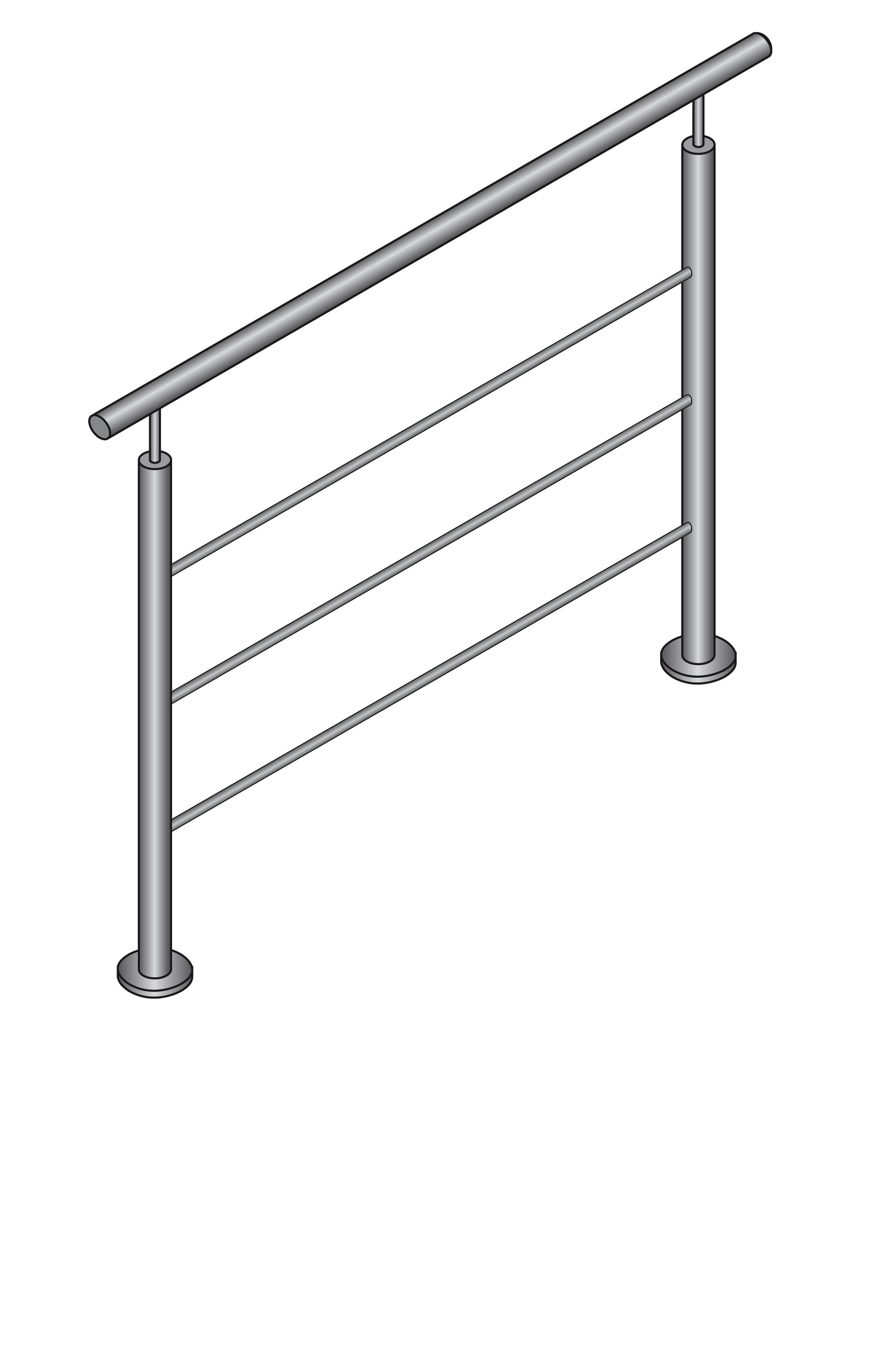 Barandales y pasamanos para uso industrial. Fabricados con tubo redondo calibre 16, soportes de barra maciza y bridas de placa 3/16". Con soldadura en todas sus partes para garantizar un óptimo desempeño ante al uso rudo.