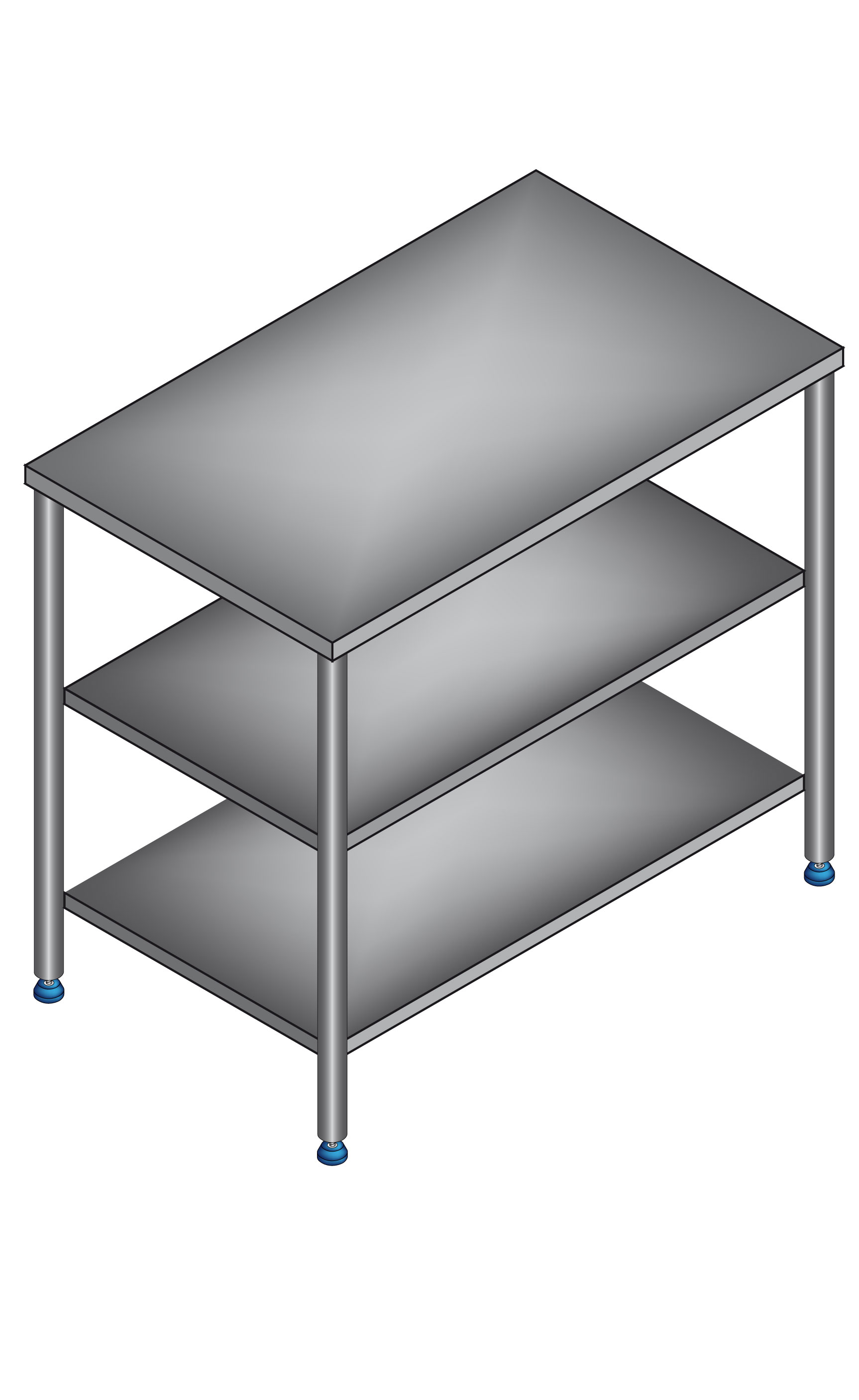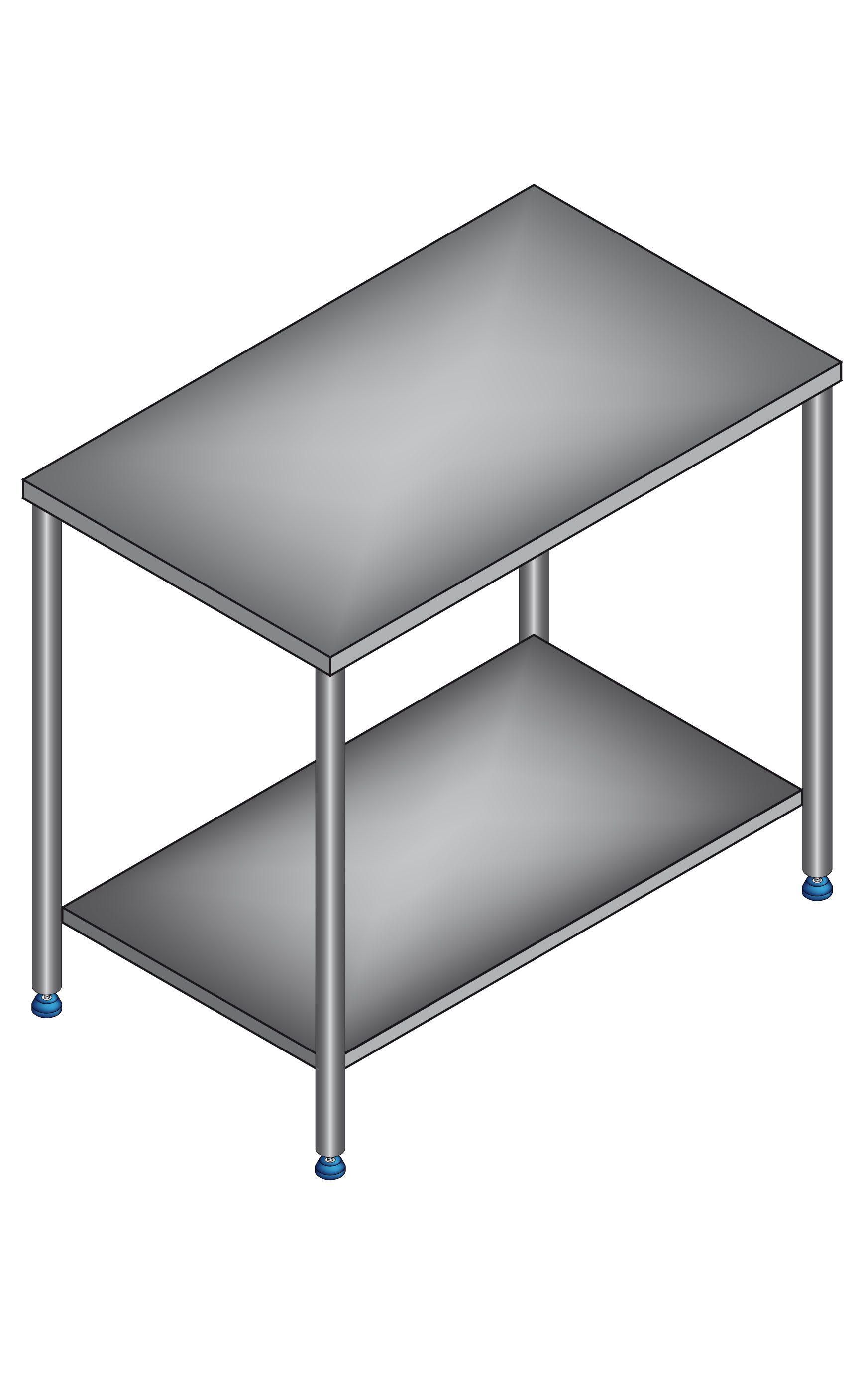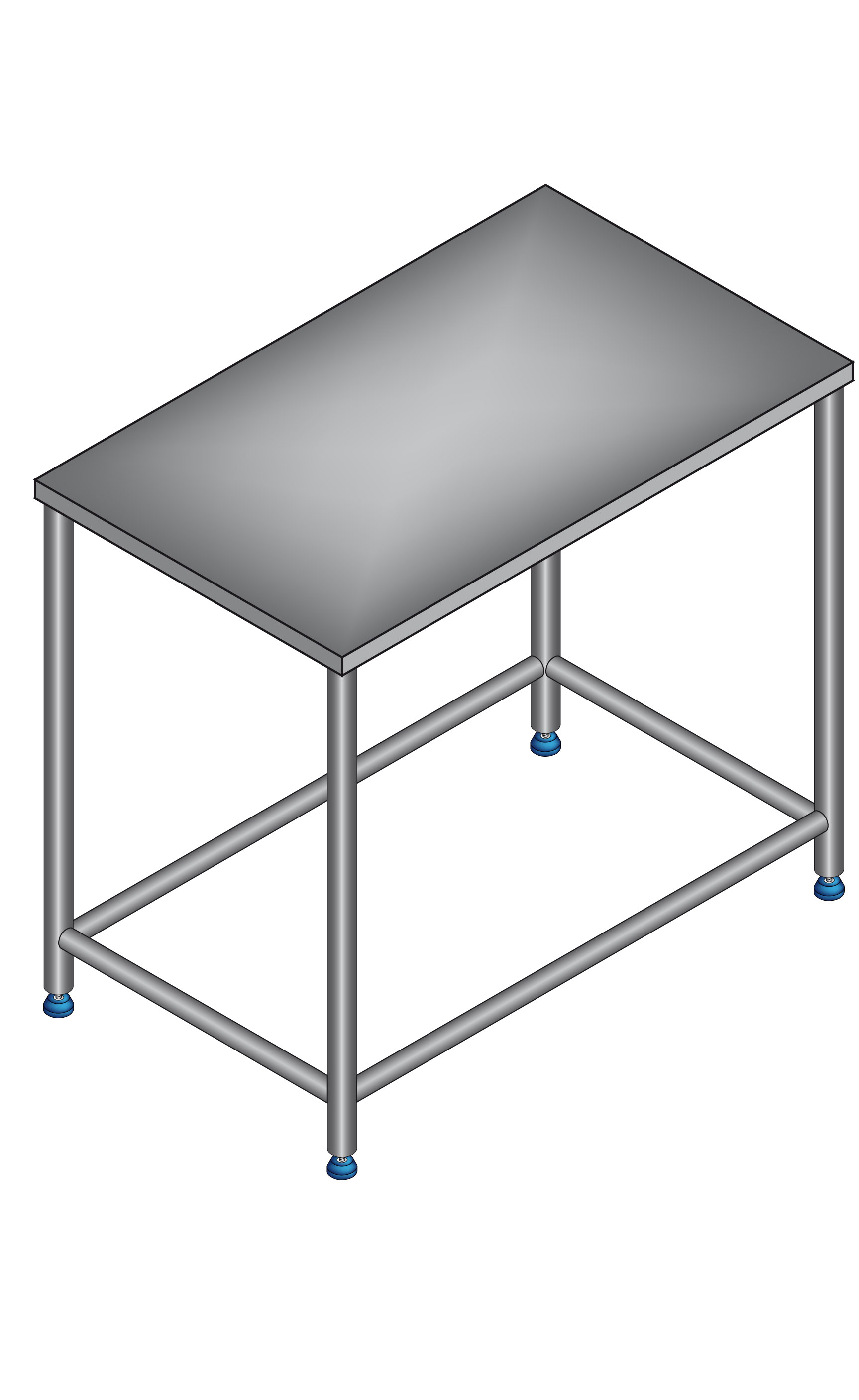 Mesas de trabajo para uso industrial o farmacéutico. Cubiertas reforzadas para uso rudo. Niveladores o ruedas sanitarias de poliuretano, no rayan ni maltratan el piso epóxico.