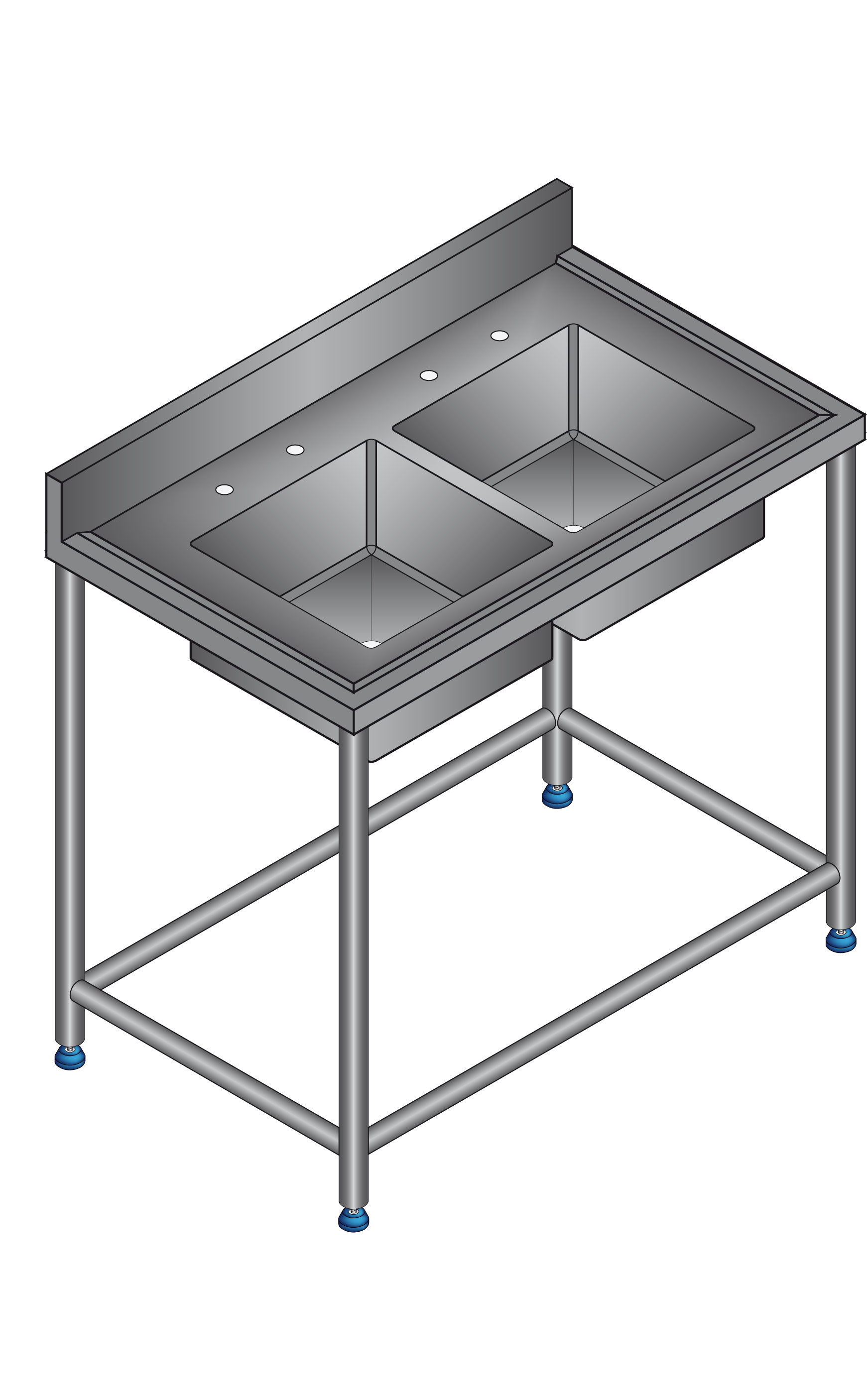 Dos tarjas con curvas sanitarias, fondo con doblez diamante y orificio para contracanasta